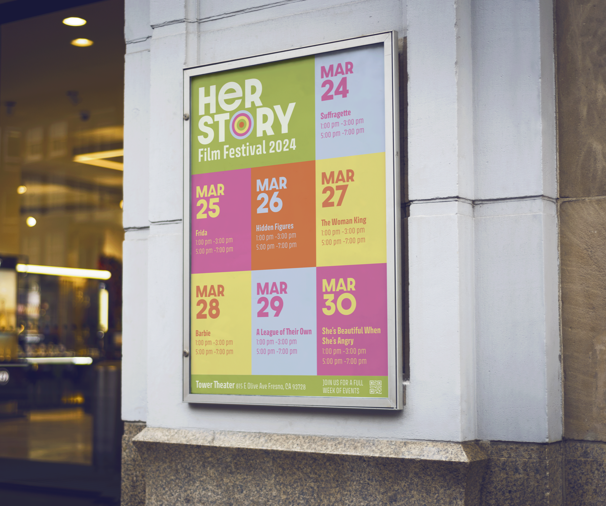 A film festival dedicate to celebrate and empower women. Featuring a variety of films where women in all their forms, perspectives, experiences, and strength, inspire and bring visibility to all who may need it. Branding was designed keeping in mind the diversity among women and also with the goal of truly portraying all their colors and how capable they are.